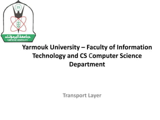 The document discusses the User Datagram Protocol (UDP) and the Transmission Control Protocol (TCP). UDP is a connectionless protocol that provides process-to-process communication over IP. TCP is connection-oriented and establishes a virtual connection between hosts to reliably send data using flow and error control. TCP numbers data bytes and uses sequence numbers and acknowledgments to ensure reliable in-order delivery. Connection establishment and termination with TCP uses three-way and four-way handshaking protocols. TCP guarantees in-order delivery of data to processes and handles lost packets.