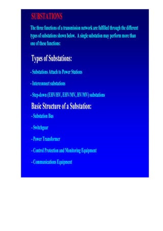 - There are various levels in a power system including generation, transmission, and distribution with different standard voltages used at each level. In India, generation is typically at 400kV, transmission at 400kV, 220kV, and 110kV, and distribution at 33kV and below.