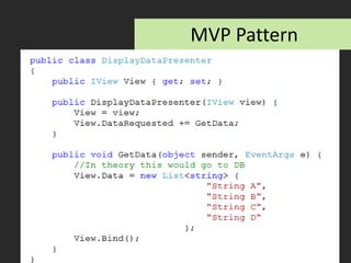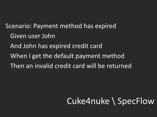The document discusses the challenges and best practices of Test-Driven Development (TDD), emphasizing the importance of proper test design, behavior-driven development, and minimizing irrelevant information. It highlights the role of test naming, use of mocks, and the significance of focusing on behavior rather than implementation details. Additionally, it mentions acceptance test-driven development principles and encourages developers to embrace TDD as a learning tool while addressing common fears associated with it.