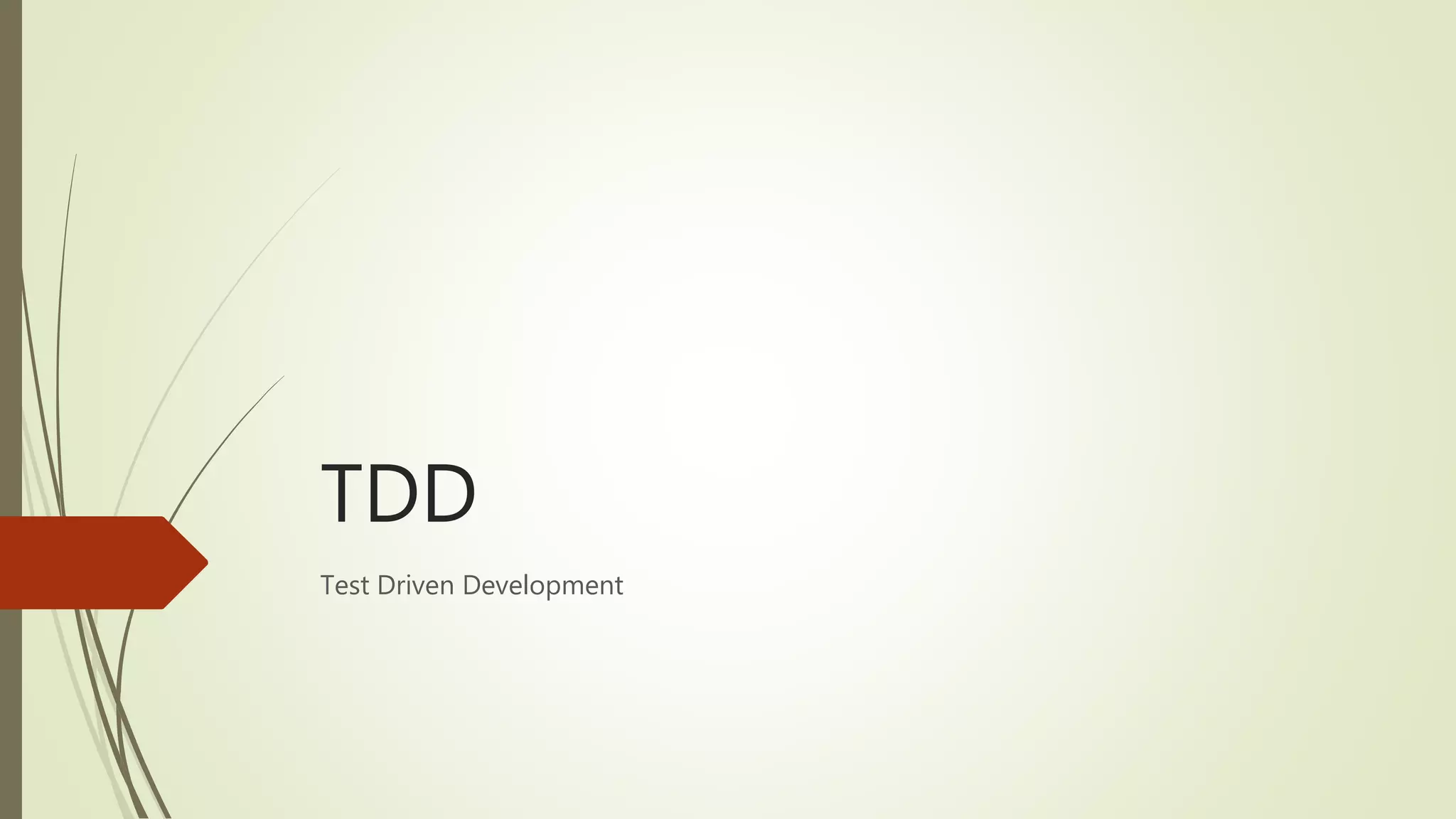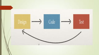 Test Driven Development (TDD) is a technique where tests are written before code to define desired functionality, with the cycle of writing a test, seeing it fail, then writing code to pass the test while refactoring code for quality. TDD ensures requirements are met, forces clean code principles like isolated and decoupled components, and leads to improved test coverage and faster debugging. For effective TDD, tests should be clean, self-documented, have single asserts, run fast, be independent, and have boolean outputs. While it may initially slow development time, TDD provides long term benefits.