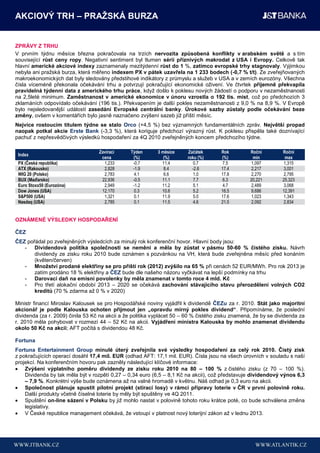 dividendy ze zisku roku 2010 bude oznámen s pozvánkou na VH, která bude zveřejněna měsíc před konáním