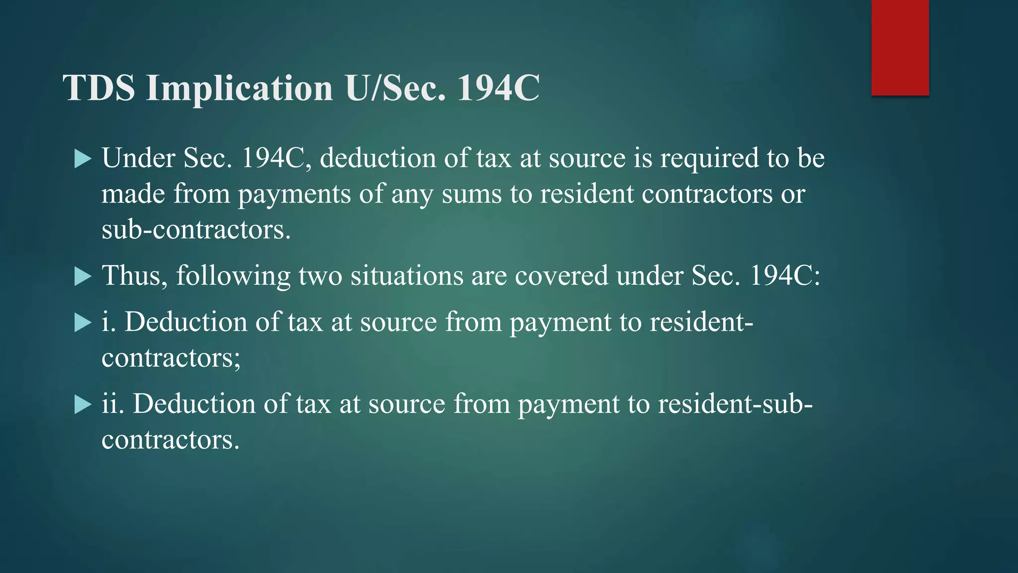 TDS is required to be deducted from payments made to resident contractors or sub-contractors under section 194C of the Income Tax Act if the aggregate amount exceeds Rs. 75,000 in a financial year. TDS of 1% or 2% depending on the recipient must be deducted unless the PAN is not quoted, in which case the rate is 20%. The deducted TDS must be deposited with the government within 7 days of the end of the month in which the deduction was made.