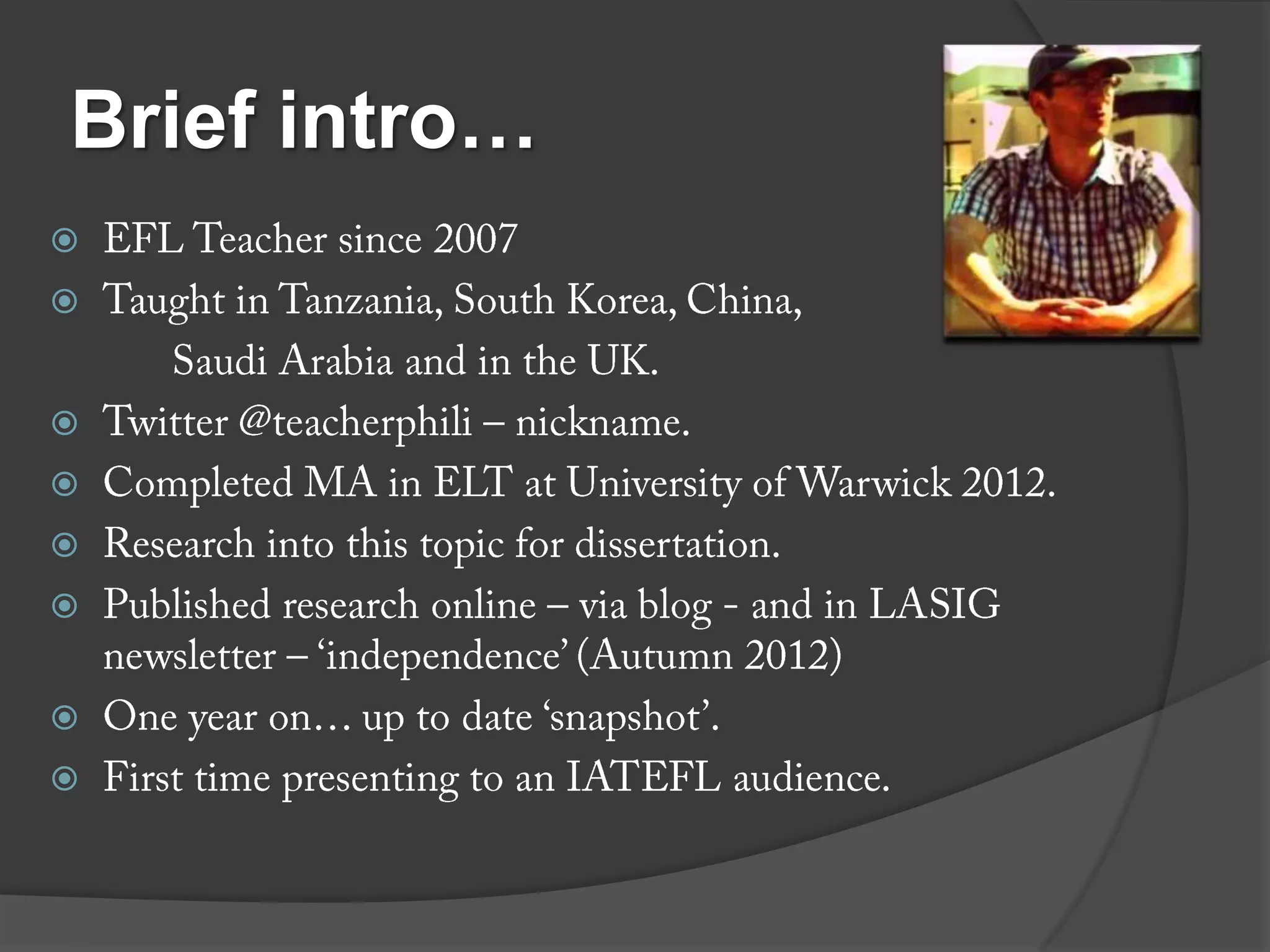 The document discusses research related to teacher autonomy in the context of technology and web tools, highlighting initial research questions and barriers to utilizing such resources. It also explores findings about factors influencing autonomy and encourages reflection on the creation of personal autonomy in educational settings. Additionally, it includes references to relevant academic works and sources for further readings.
