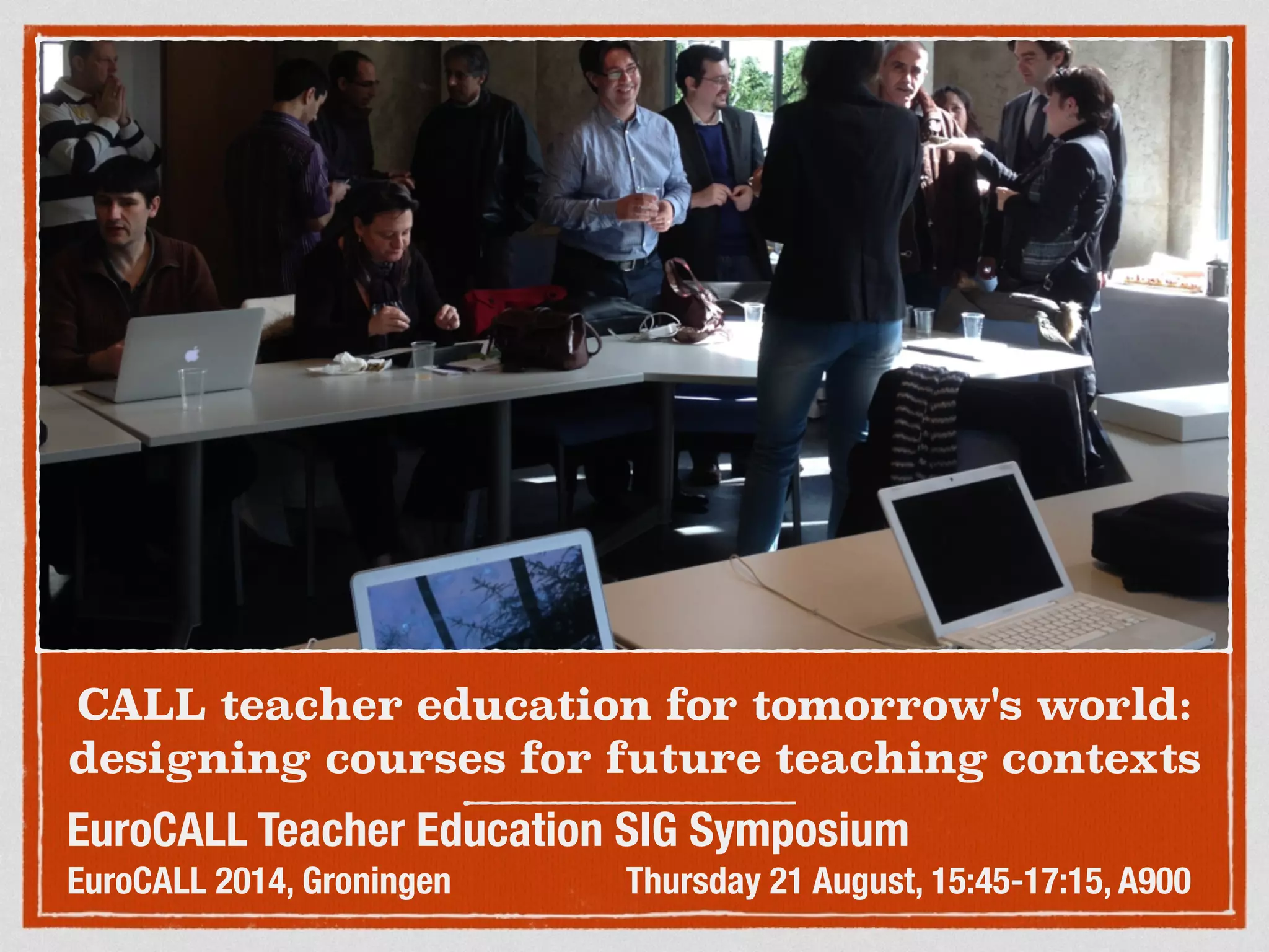 The document discusses a symposium focused on designing teacher education courses for future CALL (Computer-Assisted Language Learning) teaching contexts, highlighting the need for methodologies that adapt to transforming technologies in language education. Various research papers presented at the symposium investigate how both novice and experienced teachers can best prepare for changes in learning environments and integrate technology effectively in their teaching practices. It emphasizes the importance of reflective practices and collaboration in course design to enhance the pedagogical skills of pre-service teachers.