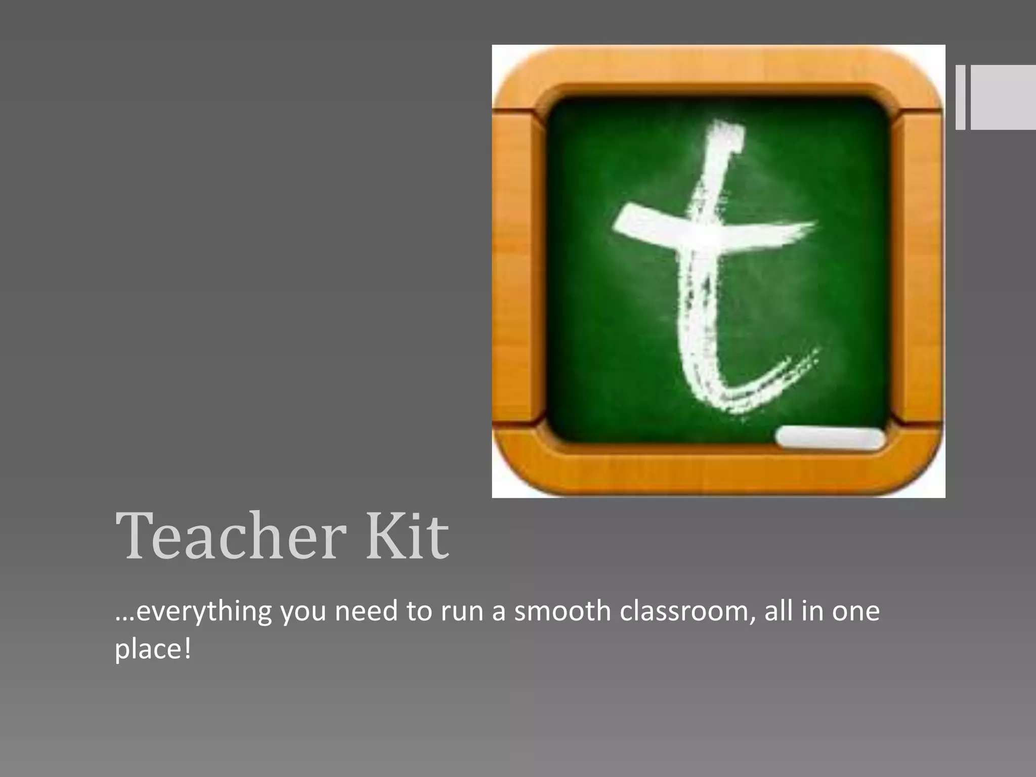 This document describes a teacher kit app that allows teachers to organize all classroom information in one place. The app holds student rosters, seating charts, grades, behavior notes, IEPs, and other materials. Teachers can create student lists by class, period, or other criteria. They can take or upload student photos. The app allows for attendance tracking through customizable seating charts and behavior note taking. Data can be imported or exported. The app aims to replace bulky binders and provide a free digital organization solution for teachers.