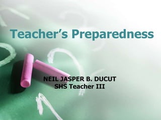The document discusses a 1998 survey of teachers that asked about their preparedness for various classroom demands. It finds that while most teachers felt moderately or somewhat prepared, experience and professional development affected perceptions of preparedness. Specifically, it found that less experienced teachers felt less prepared for classroom management and implementing curriculum standards. Teachers who participated in more hours of professional development on a topic felt more prepared for related classroom demands. Collaborative activities like common planning, collaboration with other teachers, and networking also increased feelings of preparedness.