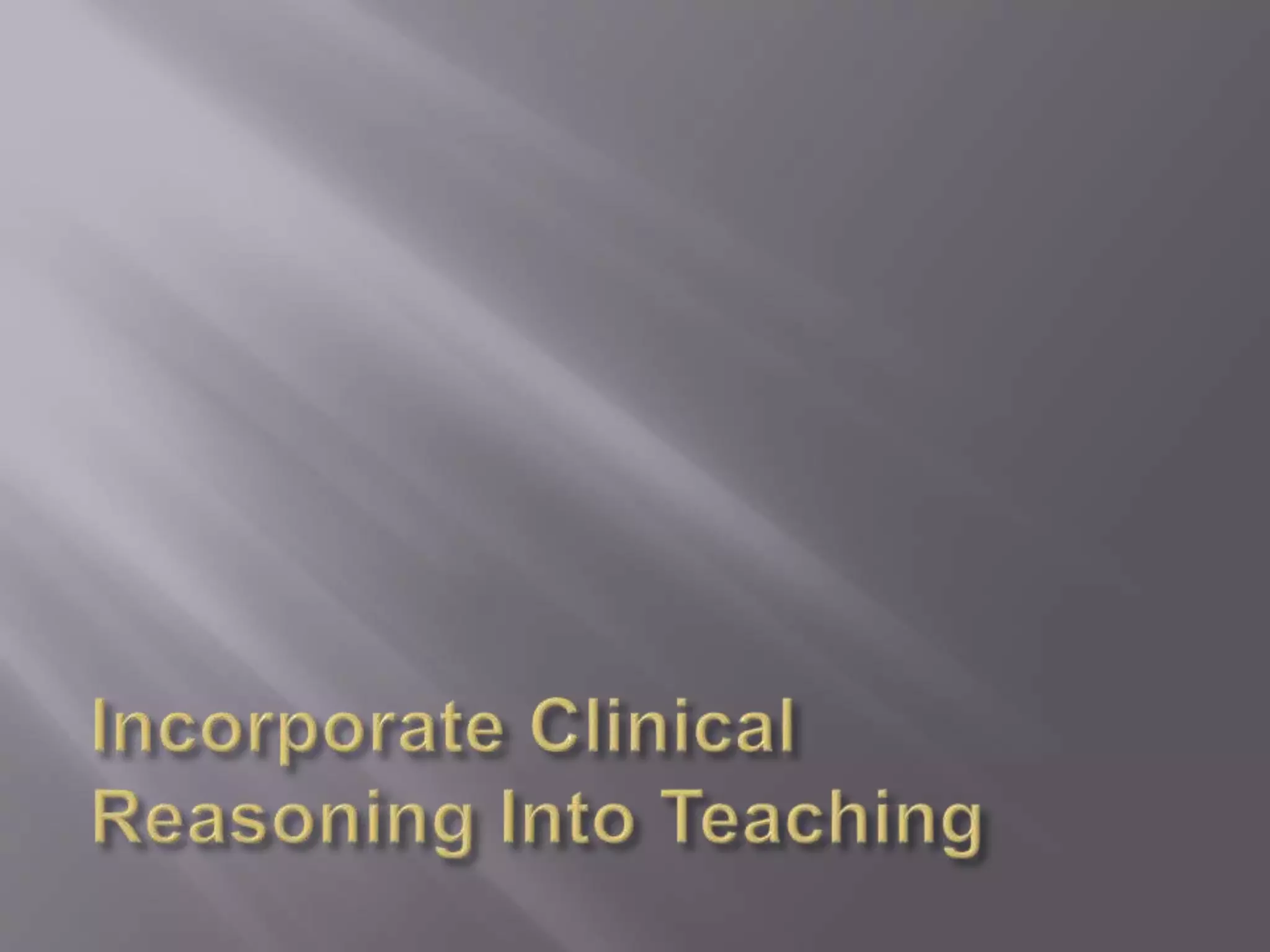 This document discusses teaching clinical reasoning skills to learners. It emphasizes using both analytical and non-analytical reasoning approaches. Non-analytical reasoning like pattern recognition is intuitive for experts but can lead to errors for novices. The document recommends teaching Bayesian reasoning to help learners develop analytical skills in a structured way. It provides examples of using sensitivity, specificity, and likelihood ratios to calculate pre-test and post-test probabilities to diagnose conditions. Developing these quantitative reasoning abilities helps learners strengthen clinical decision making and determine appropriate treatment thresholds. Active learning approaches that challenge learners' clinical judgments are advocated over passive knowledge acquisition.