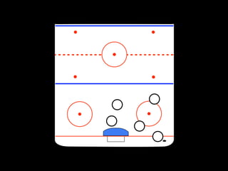 This document provides coaching tips for teaching defense in hockey. It emphasizes that the sole objective of defense is to keep the puck out of the net. It recommends focusing first on individual skating skills, then teaching players to think strategically by always outnumbering the puck and cutting down space. The final step is to teach players to recognize common defensive patterns through various drills.