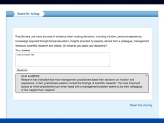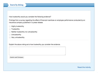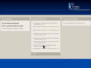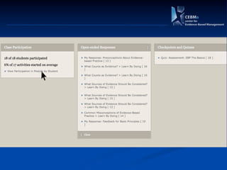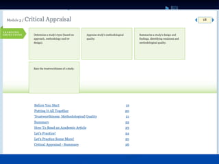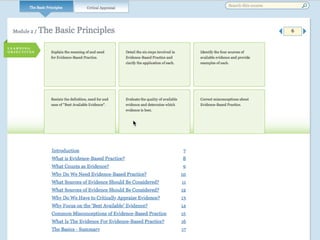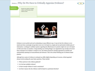 The document introduces the CAT (Critically Appraised Topic) manager, a tool for managers to evaluate the trustworthiness of scientific studies to address practical questions regarding interventions and outcomes. It mentions an online learning module on evidence-based practice (EBP) and lists upcoming modules on critical appraisal. The document also calls for participants, referred to as 'guinea pigs,' for further development.