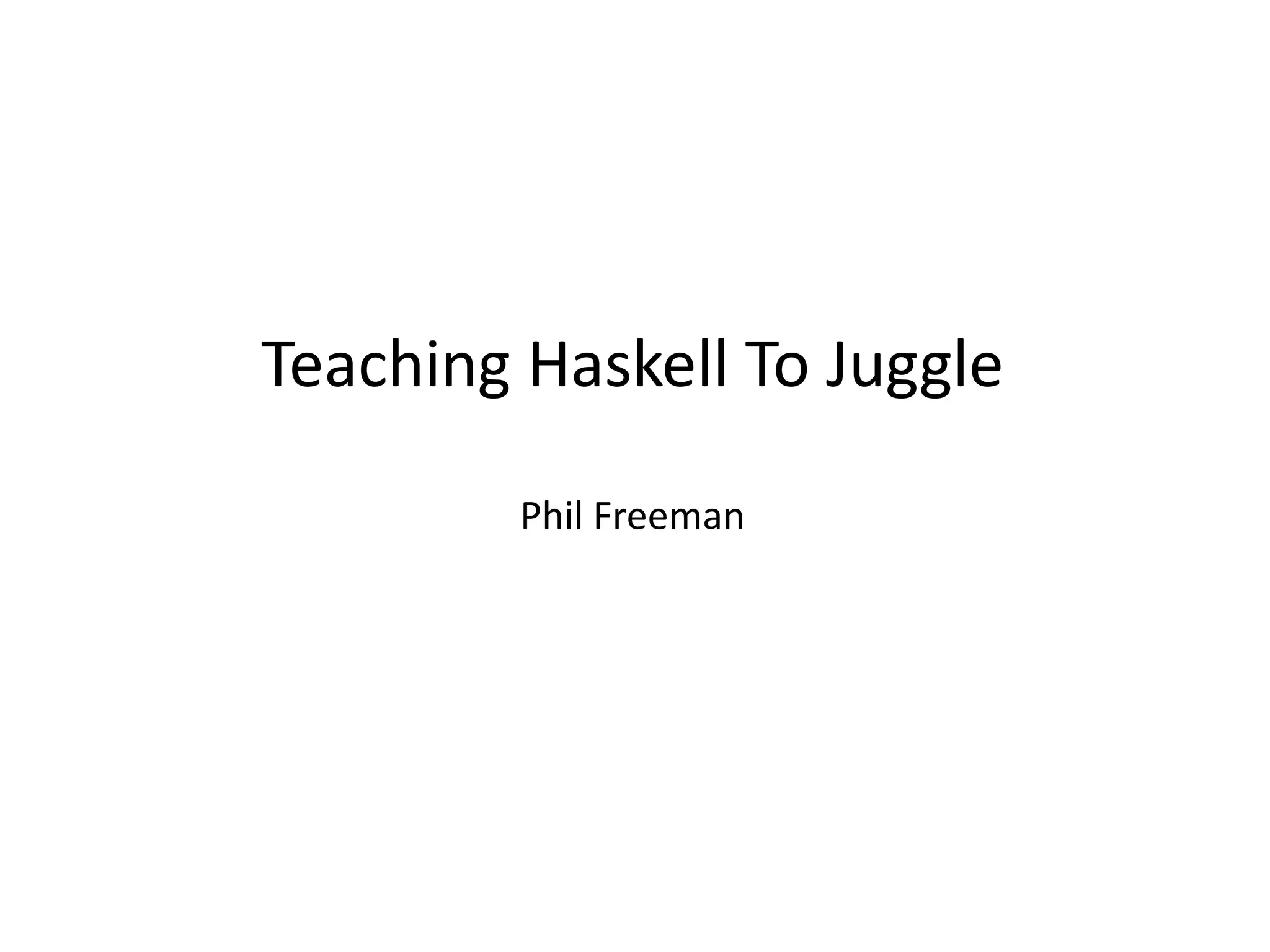 This document discusses teaching Haskell for juggling notation and simulation. It covers siteswap notation for encoding juggling patterns, space-time diagrams for visualizing ball trajectories, and state diagrams for modeling valid throw sequences. Haskell is proposed for its type safety, isolation of side effects, and succinct programming features like pattern matching and higher-order functions. Code examples are presented for generating valid siteswaps and animating simulations using OpenGL. Finally, representing siteswaps at the type level in Haskell is proposed to leverage the type system for validity checking.