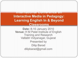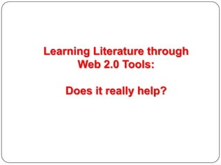 The document discusses the use of technology to teach literature. It begins by noting the increased use of technology in language teaching but argues that technology is not used as effectively when teaching literature. Several experiments using tools like BBC productions, online poems, Skype lectures, and YouTube videos are described, but the document argues that technology cannot fully capture the complexity, symbolism, and free interpretation of literary texts. It concludes that reading literature cultivates imagination, while technology limits horizons and interpretation, and the real enjoyment of literature comes from reading rather than adaptations.