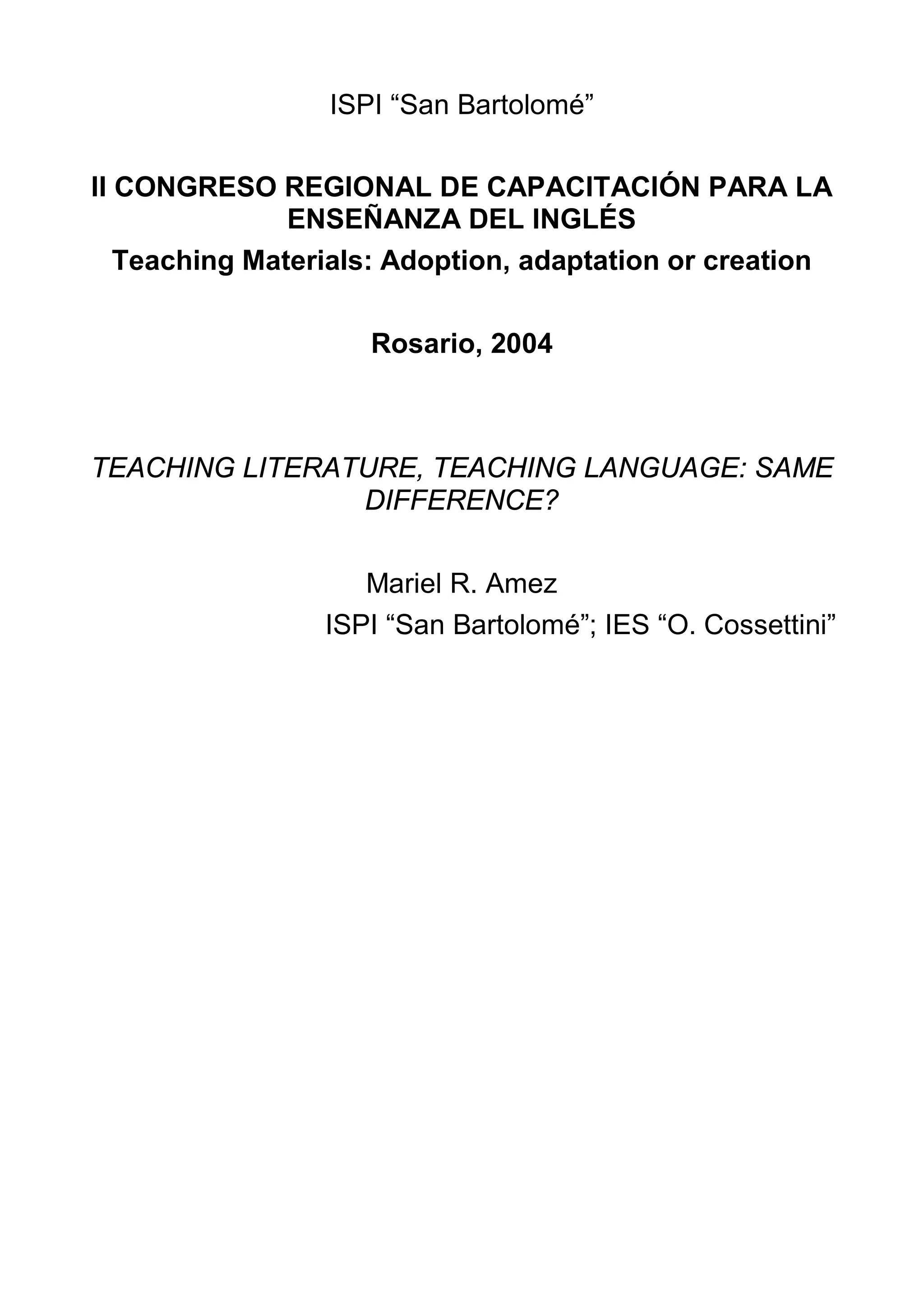 The document discusses the adoption, adaptation, and creation of teaching materials for English language instruction, highlighting the importance of literature in language learning. It emphasizes criteria for selecting literary texts and explores various teaching tasks and activities to engage students in understanding both language and literature. The document also includes examples and references to enhance teaching practices and the enjoyment of reading.