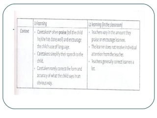 The document discusses key concepts and terminology related to English language methodology. It provides tasks for students to analyze differences between first and second language learning, define English language methodology, and discusses approaches, methods, techniques, and curriculum. The tasks are meant to help students understand methodology as it relates to how people learn languages, pedagogical practices, and classroom instruction.