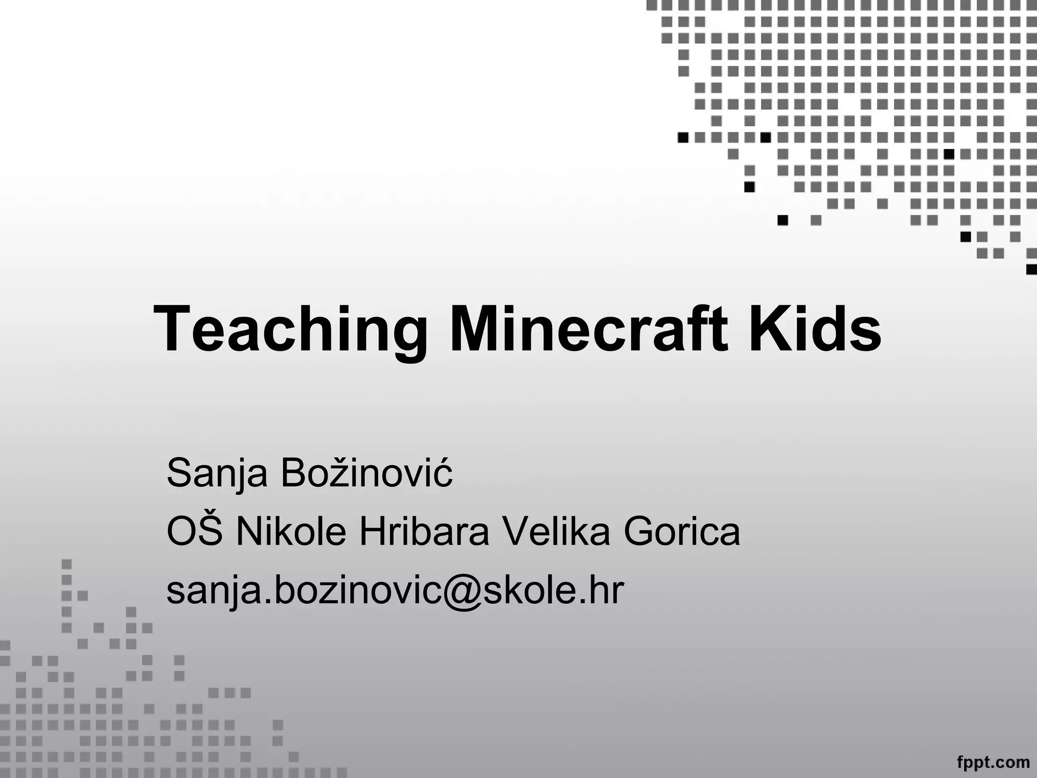 The document discusses the educational potential of Minecraft for language learning, highlighting its interactive and engaging nature. It outlines how the game can be utilized in classrooms to teach various subjects, emphasizing its benefits for diverse learning styles, including those of unmotivated or autistic students. Additionally, it presents several teaching examples and challenges related to incorporating Minecraft into the curriculum.