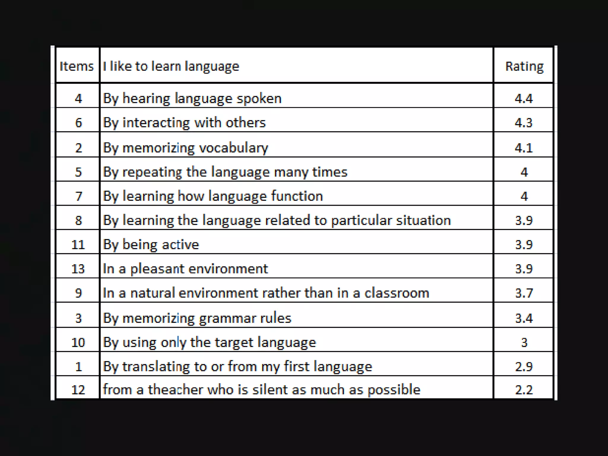 This document discusses teaching and learning methods for language acquisition. It begins by explaining the importance of individual learner variables and learning context. It then outlines the key components of communicative language teaching: grammatical, discourse, sociolinguistic, and strategic competence. Another theory discussed is that language function is more important than form structure. The document lists several language teaching methods like situational language teaching, the natural method, and total physical response method. It describes the participants in the research project as intermediate or above language learners. It poses questions about replicating the research in other places or with different ages. Finally, it concludes that good language learners use a variety of methods and are flexible to suit different learner needs.