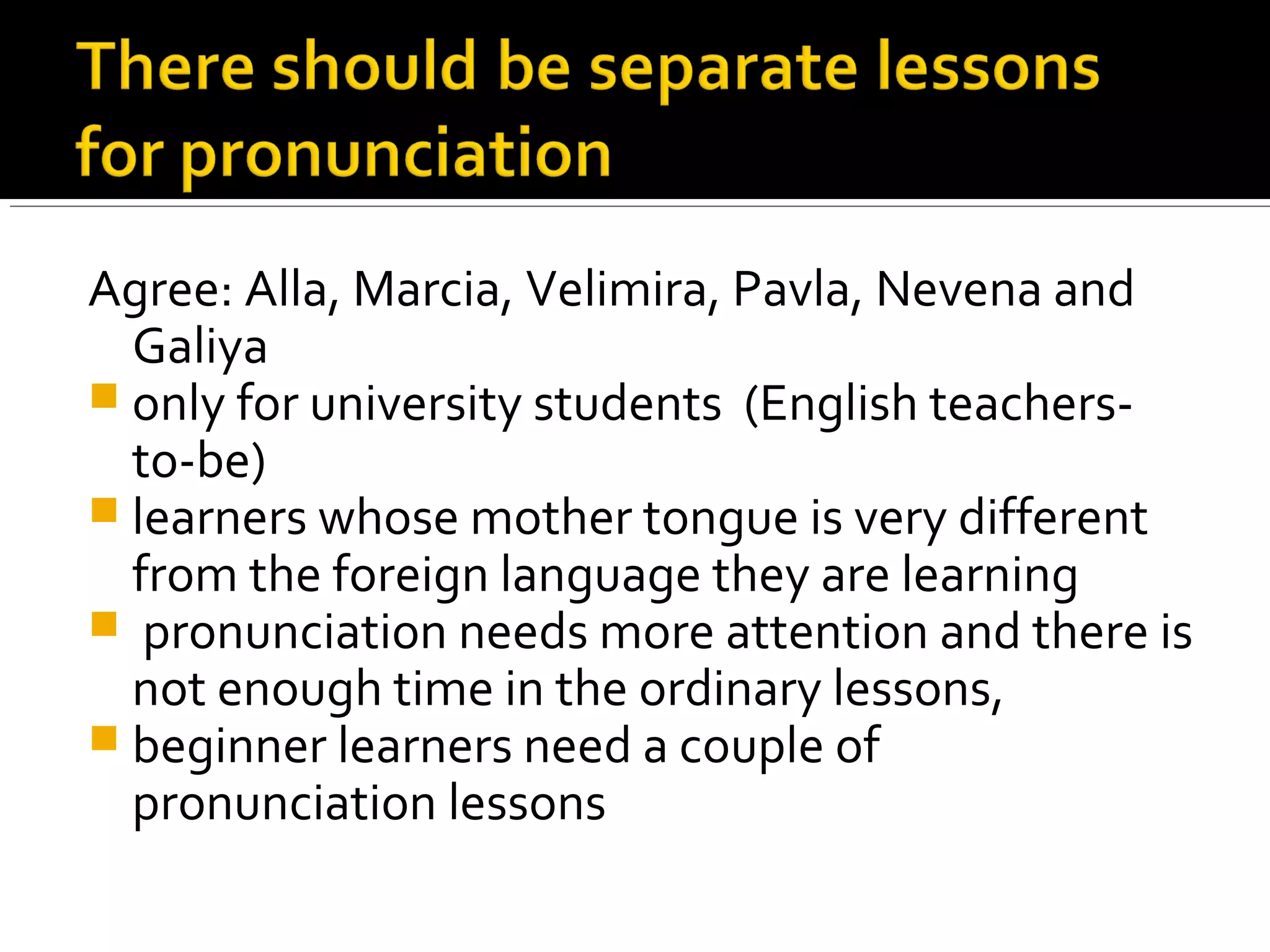 The document discusses opinions on teaching pronunciation to English language learners. It notes that pronunciation is important, especially for learners whose first language is very different from English. While some argue pronunciation lessons could be boring, others believe they are necessary, at least for beginners. There is general agreement that pronunciation should be taught in context, and that both proper pronunciation and stress/rhythm are important. Teachers need to know terminology to help students, but practice is most important. Advanced learners may be able to learn from each other, as long as the teacher ensures correct pronunciation.