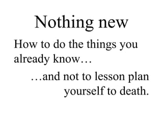 This document provides guidance for organizing reading tasks and lessons in large multilevel English classes with limited resources. It outlines a sample reading lesson using a text from English for You 1. The lesson includes pre-reading, while-reading, and post-reading activities like numbering paragraphs, predicting the text's content, finding new vocabulary, summarizing parts of the text, playing a vocabulary game, discussing personal opinions on the topic, and having students write stories related to the text. The lesson is designed to be reusable with different texts and engage students of varying levels while maintaining discipline with minimal materials.
