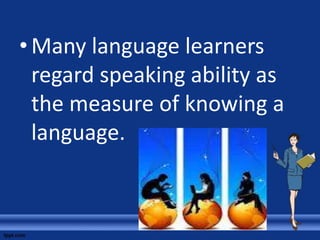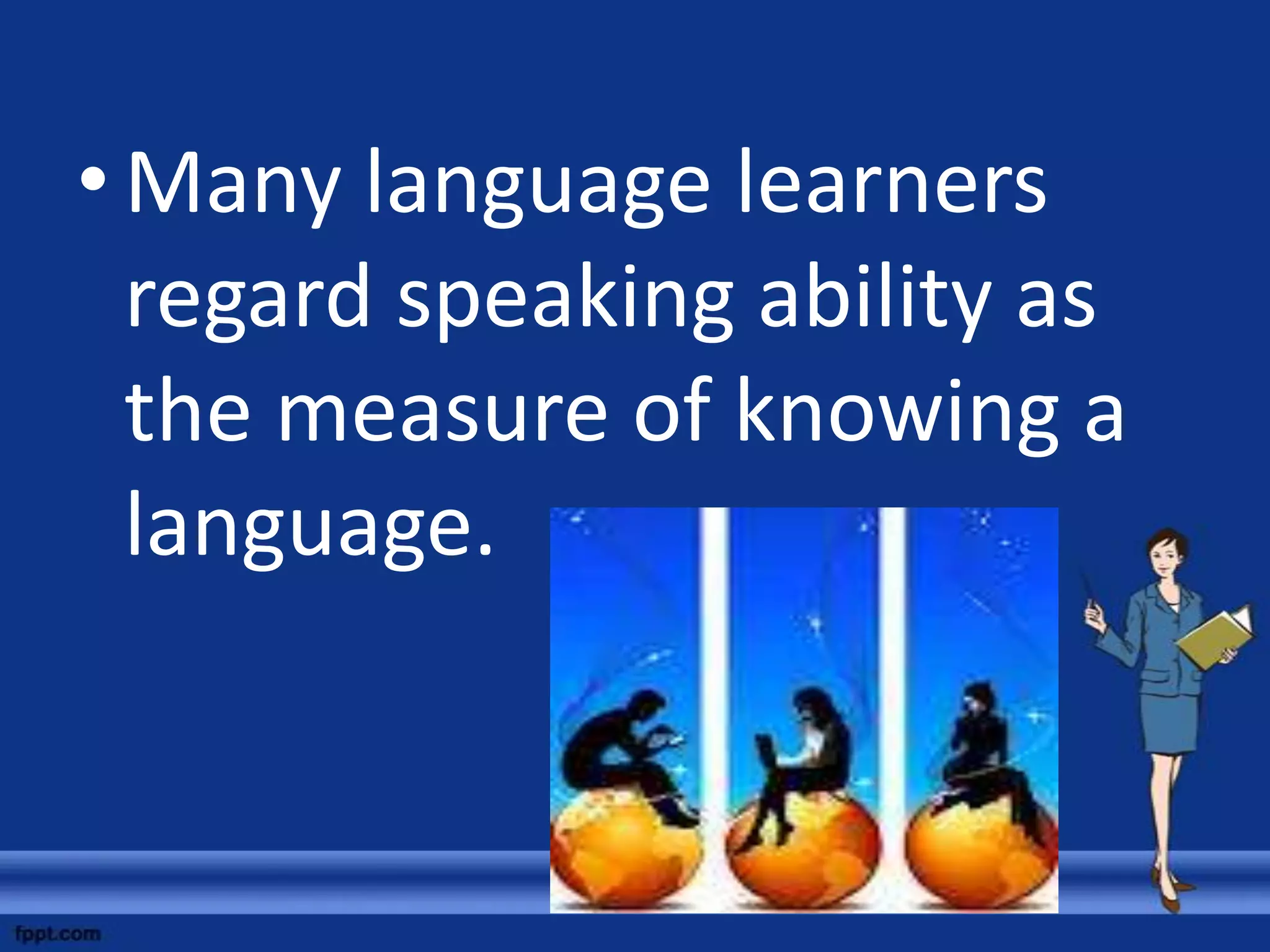 1) Many language learners view speaking ability as the most important skill and measure of knowing a language.