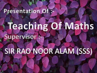This document discusses different techniques for teaching mathematics, including oral work, written work, and assignment work. It explains that oral work involves solving problems mentally without writing and helps build a foundation for later written work. Both oral and written work are important, with the ultimate aim being proficiency in written work. Assignments allow students to study independently and supplement classroom teaching. The document provides guidelines for creating effective assignments and examples of how assignments and oral/written work can be used in teaching mathematics.