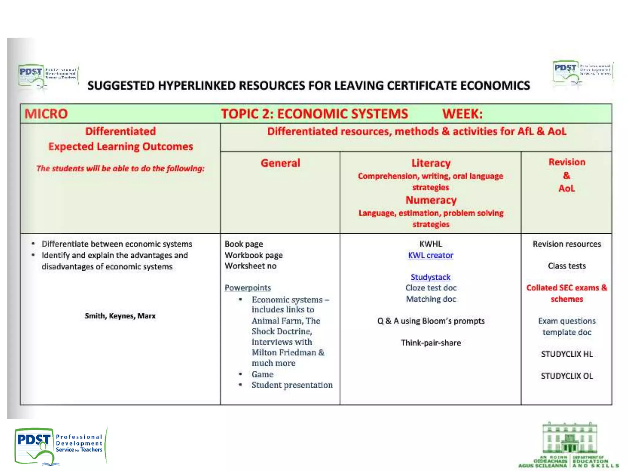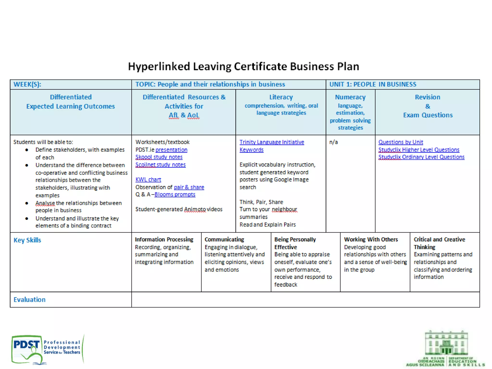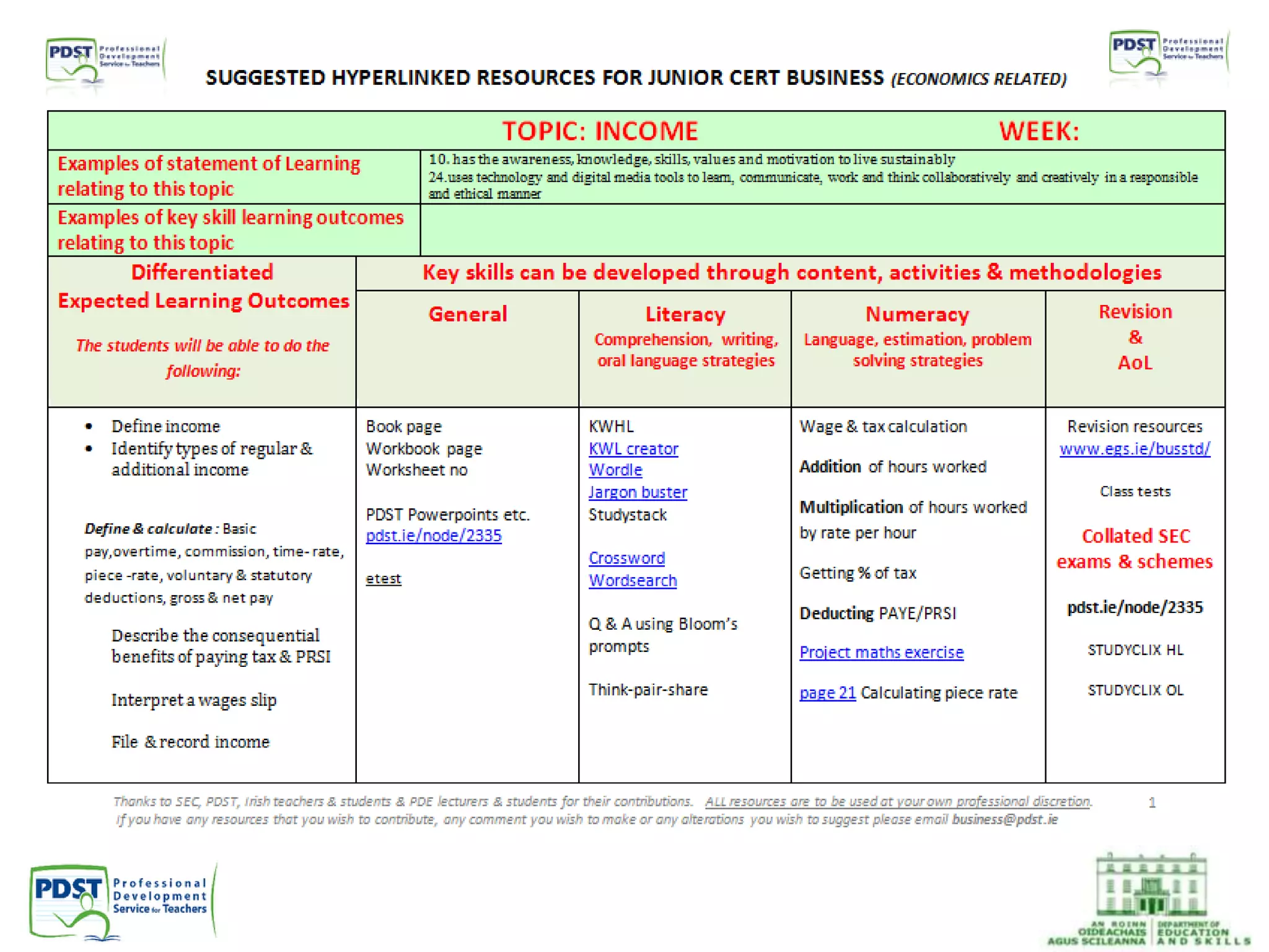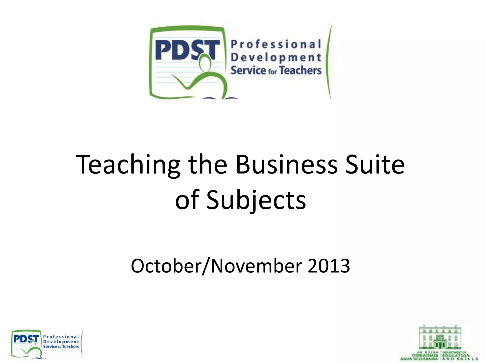 This document provides an overview of teaching resources for business subjects provided by PDST, including: