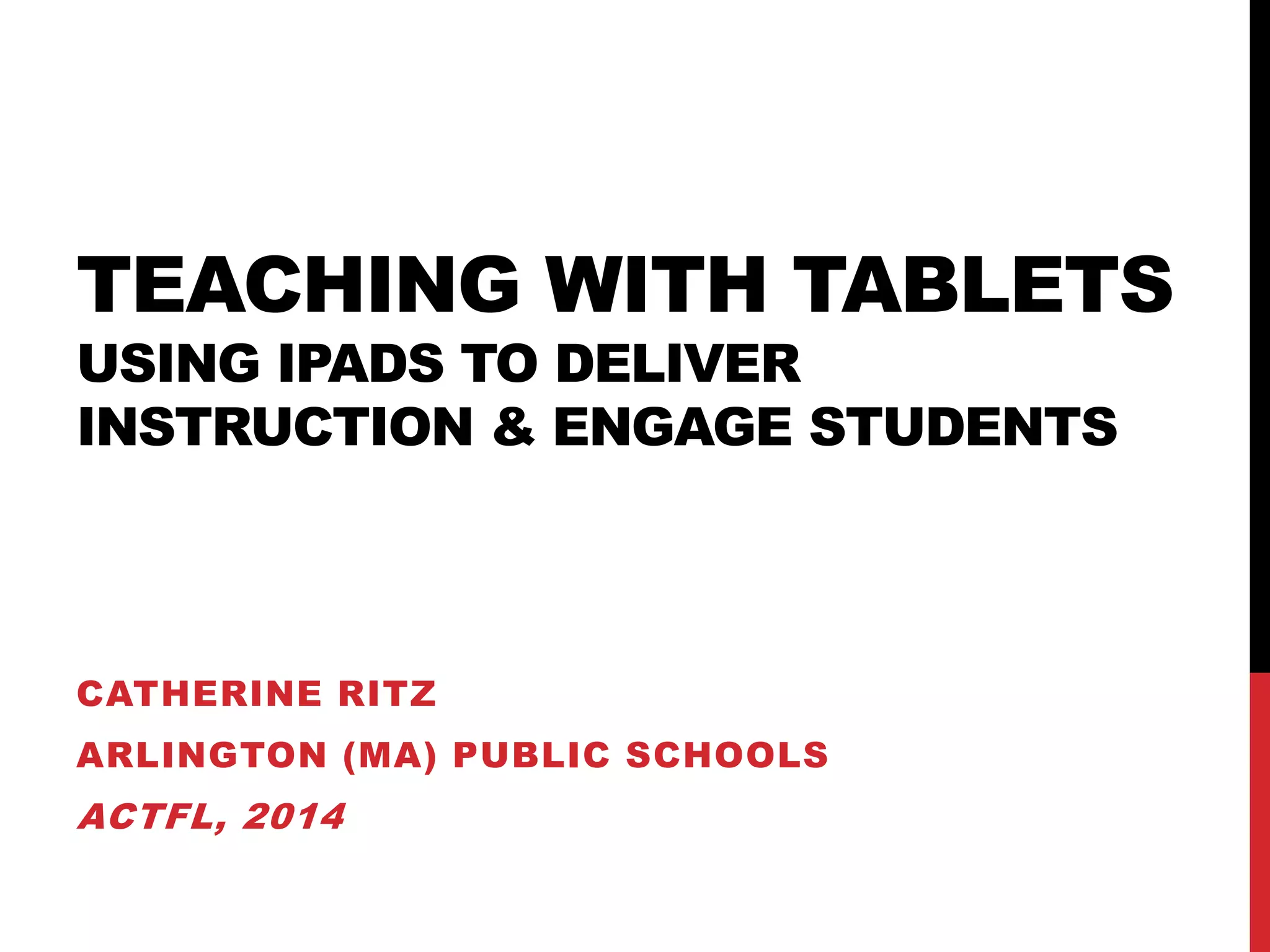 This document discusses using iPads to enhance classroom instruction and student engagement. It provides examples of how teachers can set up their classroom with tablets, create and share class materials like presentations and agendas, collect and publish student work digitally, flip their classroom by creating instructional videos, and incorporate educational apps and games. Specific workflows are outlined for setting up folders in Google Drive to organize materials and sharing them with students, as well as having students export and upload their work to submit it.