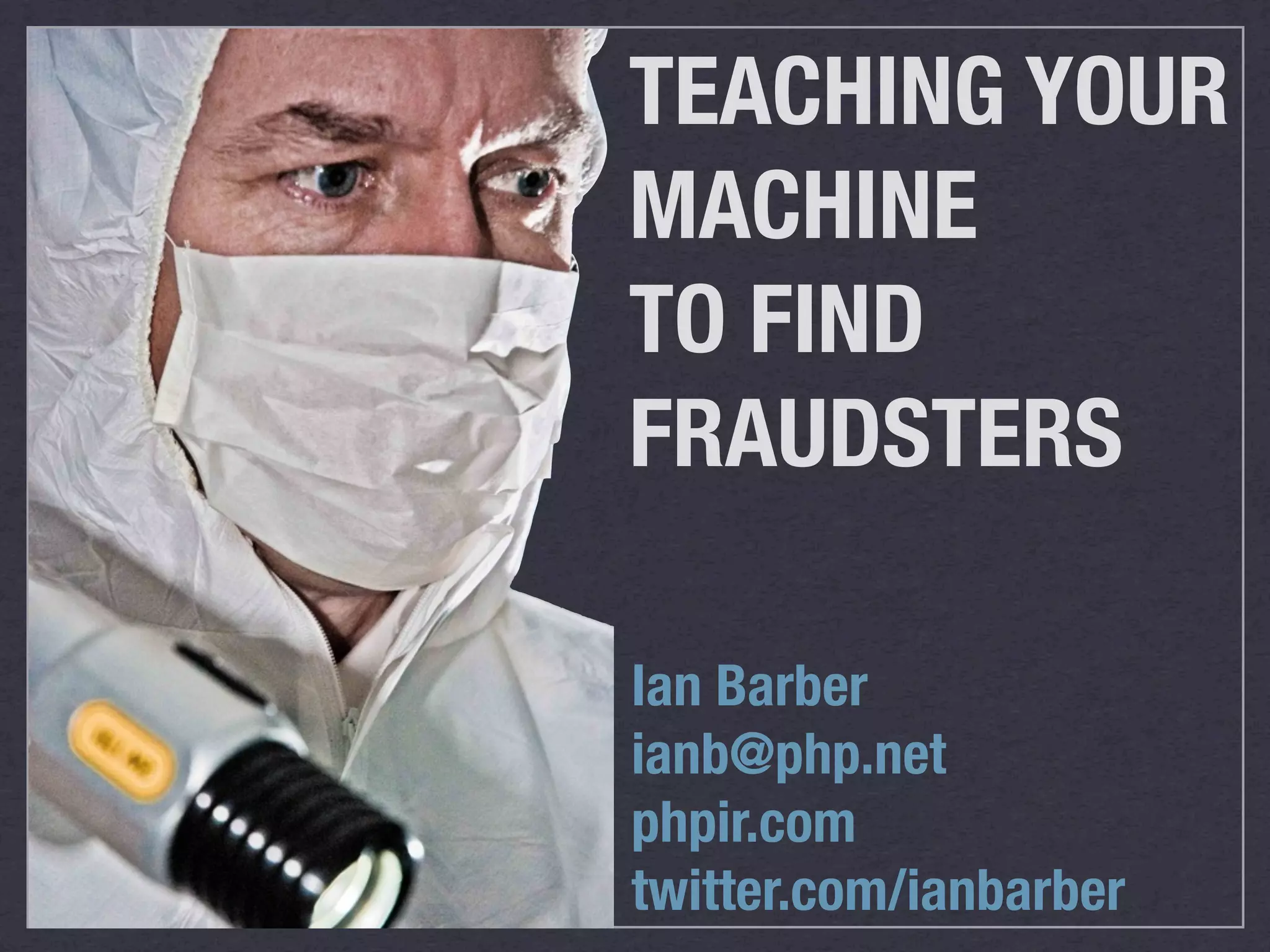 The document discusses techniques for detecting fraudulent activities using machine learning, specifically focusing on anomaly detection and supervised classifiers. It includes code snippets demonstrating algorithms for evaluating fraud detection models, analyzing user behavior, and improving prediction accuracy. Various methods such as statistical analysis, sensitivity, and training data evaluation are detailed to enhance classifiers' performance in identifying fraudulent transactions.