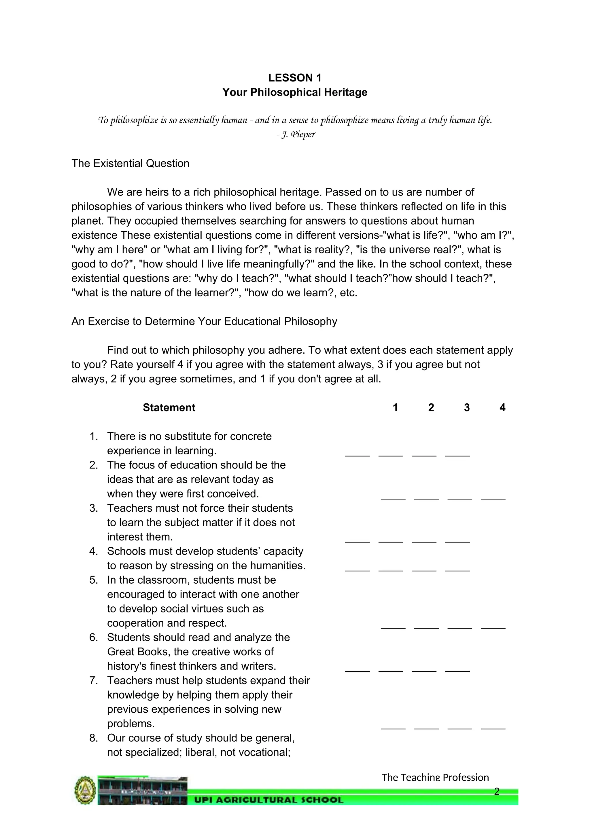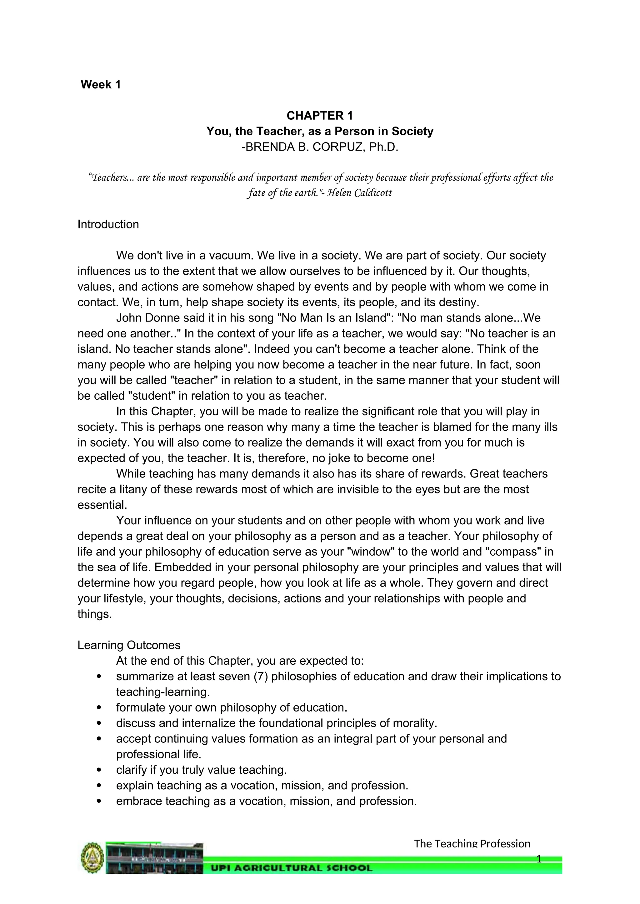 Chapter 1 of 'The Teaching Profession' emphasizes the vital role of teachers in shaping society and highlights the interconnectedness of individuals within it. It covers various educational philosophies, their implications for teaching, and the importance of personal philosophy in influencing teaching approaches. The chapter sets learning outcomes for understanding foundational principles of education and the diverse perspectives on the purpose and methods of teaching.