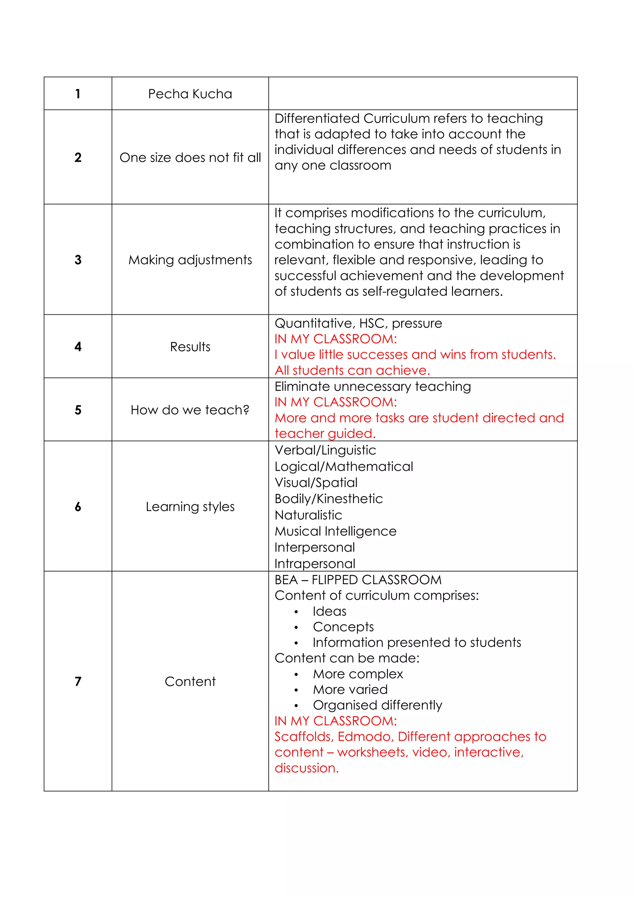 The document discusses differentiated curriculum, which refers to teaching that is adapted to individual student needs and learning styles. It involves modifying curriculum, teaching structures, and practices to ensure instruction is relevant, flexible and helps all students achieve. Some strategies mentioned include allowing student choice and discovery, varied content and processes, grouping students collaboratively, and providing pacing that facilitates complex thought. The goal is to move beyond a one-size-fits-all approach and engage students through different approaches.