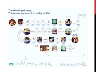 3) The concept of a "Housing Games" app or board game that would narrate tenants through the services HPD provides using easy visuals to understand their options and rights.