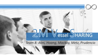 Team 8 presented information on 2M, a vessel sharing agreement between Maersk and MSC, the two largest shipping companies. Under 2M, they aim to make more efficient use of their vessels' capacities by integrating routes and communication. This is intended to save an estimated $350 million annually by reducing costs through improved fuel efficiency, port efficiency, and vessel utilization now that their combined 185 vessels service 21 routes. While opportunities include economies of scale and a more competitive service, challenges may include lack of standardization and potential regulation issues. The presentation outlined 2M's implementation process and initial outcomes after 6 months of operation.