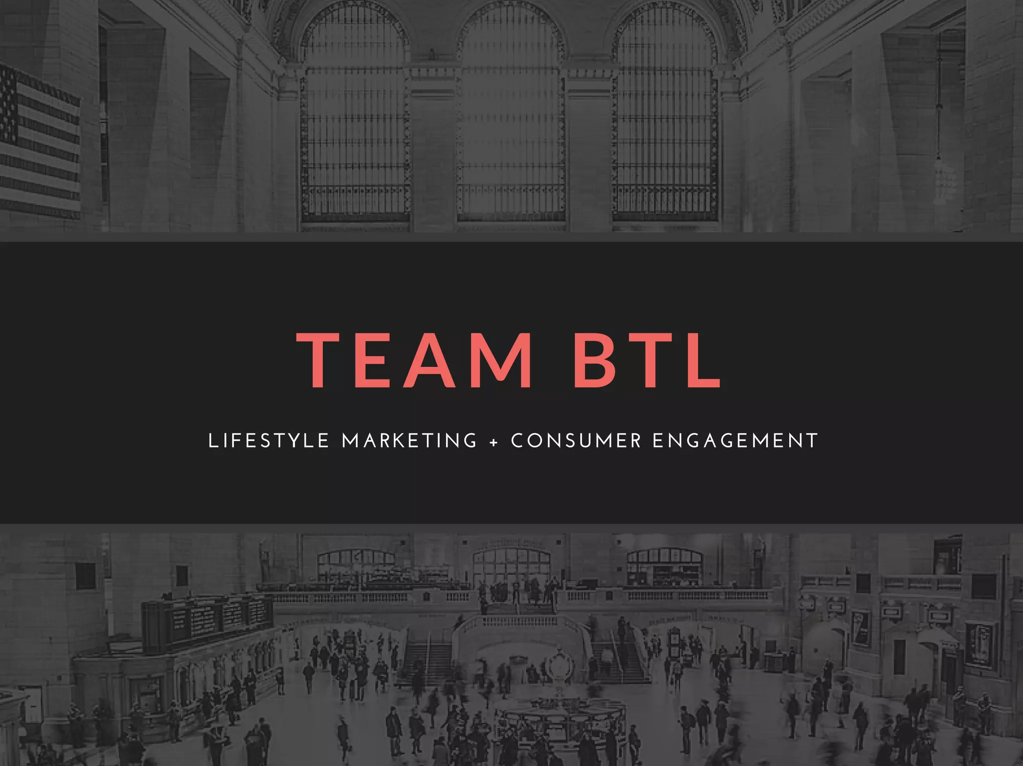 Team BTL is a global experiential marketing agency that aims to fully integrate brands into targeted consumer lifestyles. The agency was founded by Garrett Webster to help brands communicate through local campaigns that foster engagement and leave lasting positive experiences. Team BTL specializes in influencer marketing, product seeding, social media strategy, and experiential activations to initiate online conversations about brands and amplify engagement.