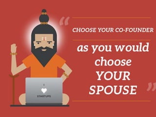 The document discusses tips for building an effective startup team. It recommends that the ideal team size is 3 members initially, then expanding to 2-5 as needed. The key steps outlined are: 1) Start by dating potential co-founders to assess fit and complementary skills rather than just sharing ideas. Don't rush into equity splits. 2) Build a prototype together before deciding on the co-founder agreement and equity split. 3) Expand the initial team by identifying key positions for programming, design, sales, marketing and other functions needed.