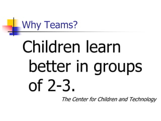 2. It provides guidance on how to effectively build a team, including defining roles, developing trust, addressing conflicts, and giving constructive feedback.