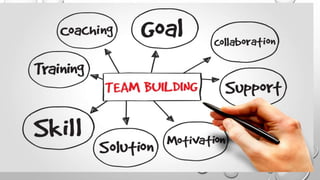 The document discusses team building and group dynamics, highlighting five key behaviors: trust, conflict, commitment, accountability, and results. It emphasizes that effective team and leadership development requires ongoing effort rather than a one-time training session. Additionally, it stresses the importance of mutual trust and the ability to engage in healthy conflict among team members.