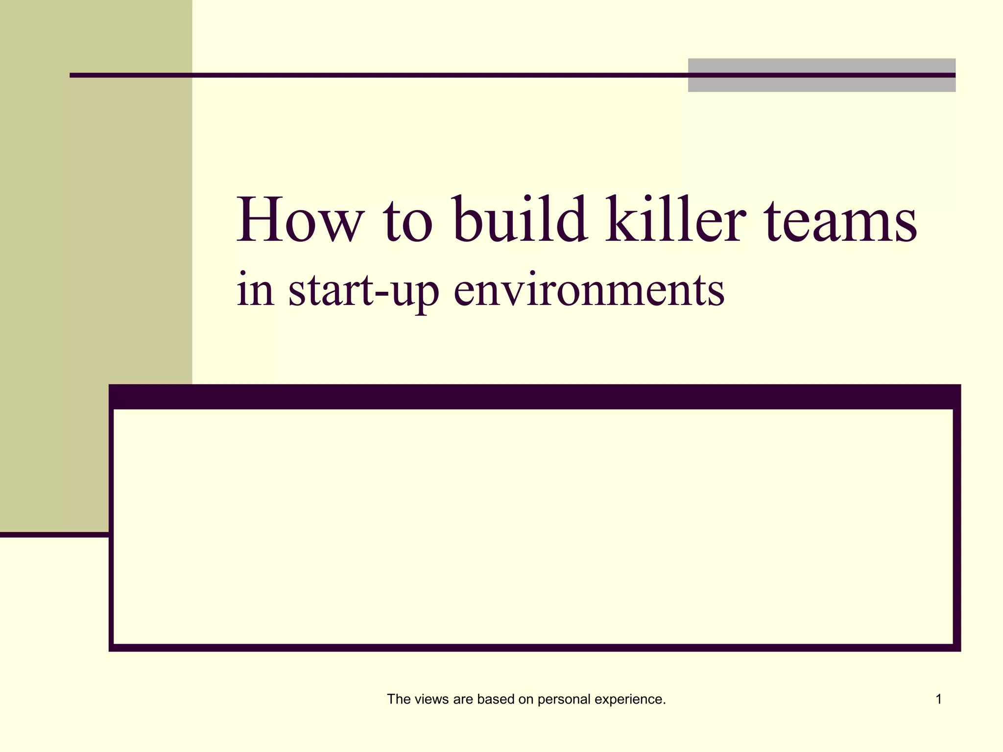 This document provides guidance on building effective teams in start-up environments. It discusses the importance of having a clear vision and solid foundation for the organization. Key aspects for building a strong team include selecting the right people through a transparent process, providing training and mentoring, and offering growth opportunities. Specific challenges around recruitment, selection, training, and retention are examined, with tips provided such as leveraging reference networks for hiring and implementing ongoing mentoring programs. The document emphasizes developing a bonding corporate culture where employees feel ownership and see long-term value in the company.