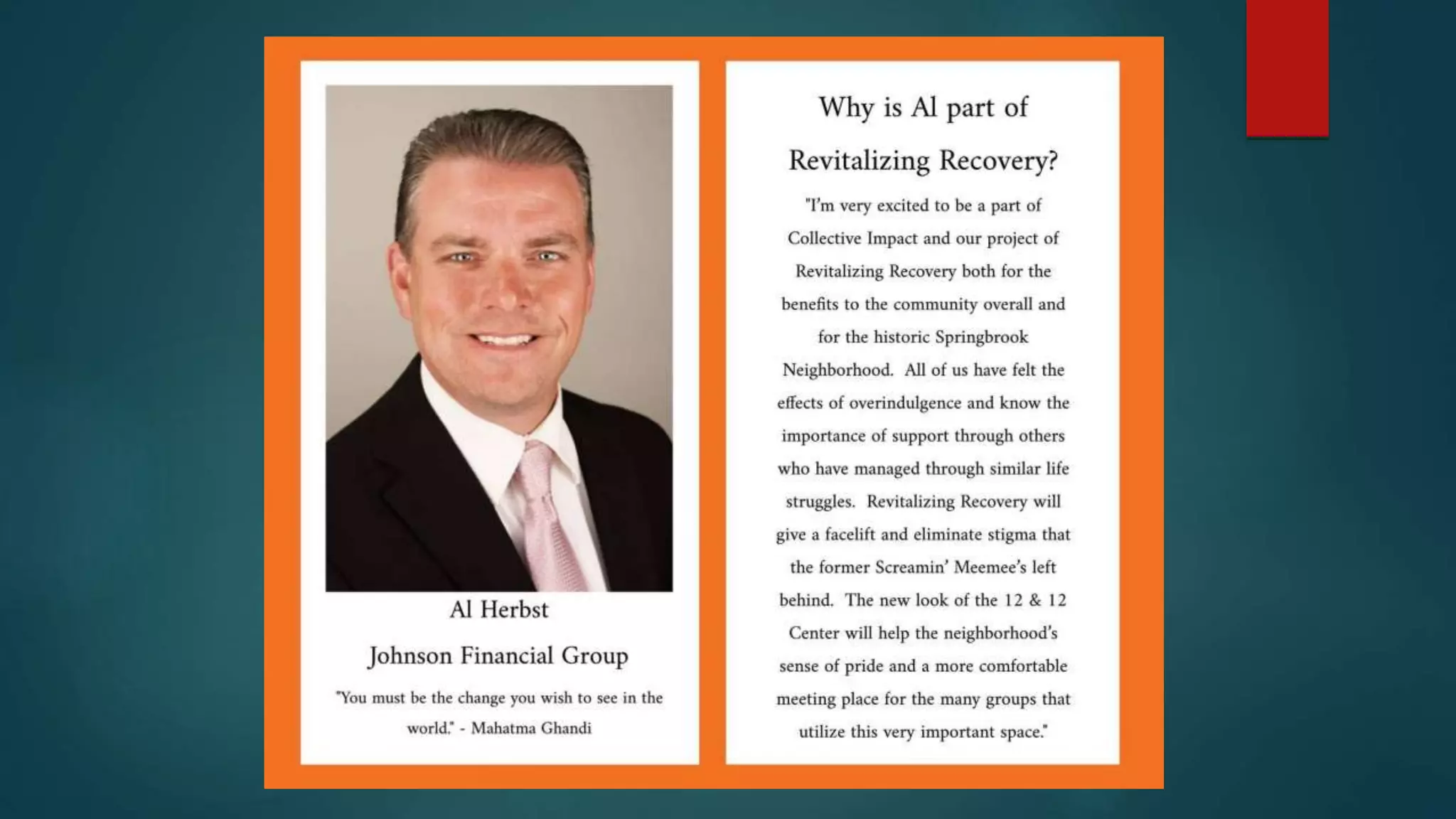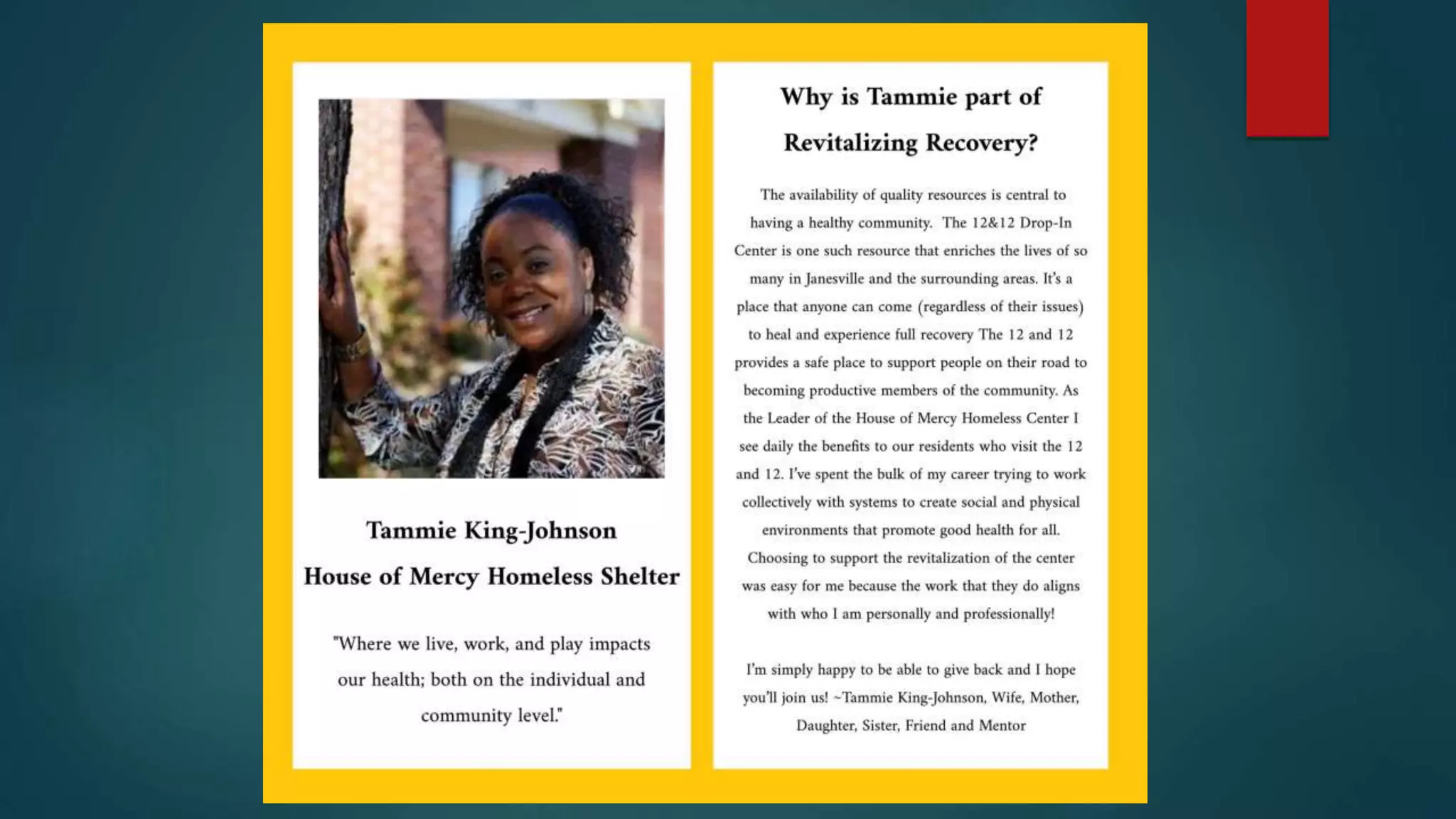 The document outlines the efforts of various community members and organizations in Rock County to support revitalizing recovery through a project led by the 12&12 drop-in center, which offers recovery groups for various issues. A comprehensive timeline is provided detailing steps from project inception to fundraising, with a goal of achieving $27,525.88 in funding, ultimately raising a total of $51,652.00 to improve community support services and reduce stigma around recovery. The document highlights successes, teamwork, and lessons learned throughout the process.