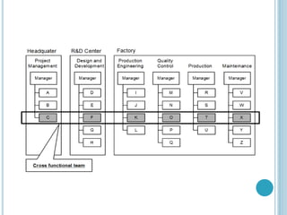 The document discusses team dynamics, including definitions, types of teams, stages of team development, and the impact on organizational behavior. It highlights the importance of team processes and characteristics of high-performance teams, along with the role of effective leadership and technology in enhancing team performance. The stages of team development are outlined as forming, storming, norming, performing, and adjourning, which dictate the team's progression and relationship building.