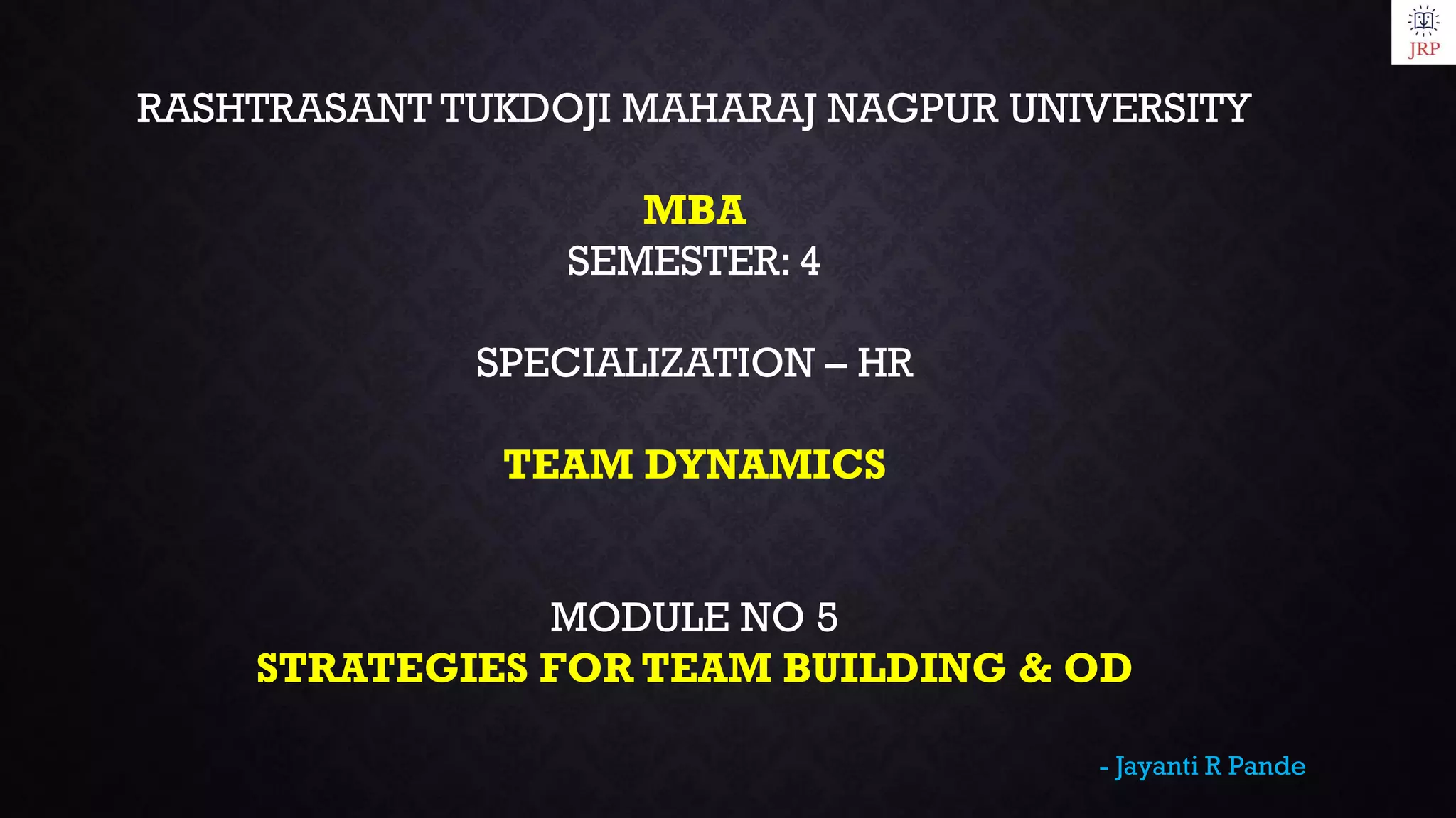 The document discusses team building and organizational development (OD), detailing strategies for effective team dynamics and the process of OD to enhance organizational effectiveness. It outlines various techniques and interventions for OD, as well as the significance and limitations of these practices. Additionally, it covers experiential learning methodologies, T-group training, and the appreciative inquiry method for fostering positive change within organizations.