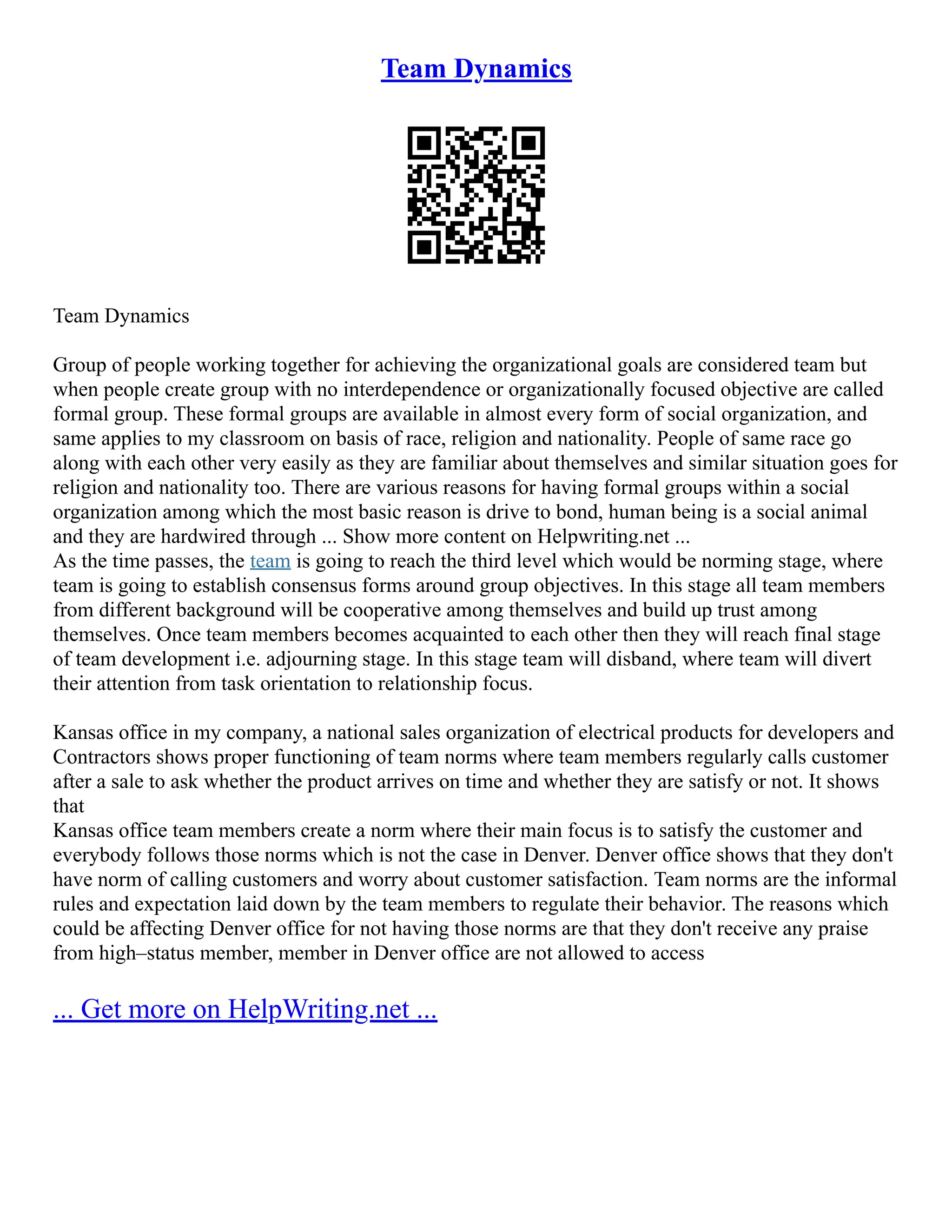 This document discusses the stages of team development: forming, storming, norming, and performing. It focuses on the storming stage, where conflicts can arise as team members struggle to define roles and processes. The team is emerging from the storming stage with increased motivation and knowledge. However, new challenges or lingering interpersonal issues could cause the team to revert back to the storming stage. Resolving interpersonal issues is key to fully moving past storming into the norming stage of improved cooperation and productivity. Education on the team development process helps teams navigate the stages more smoothly.