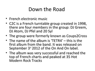 1) C2C is a French electronic music group formed in 1998 consisting of four members known for turntable music.