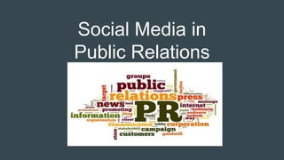 Public relations professionals can use social media to build relationships between organizations and their audiences. Social media allows organizations to connect directly with people and learn about them. Creating great, newsworthy content can lead to success on platforms like Twitter and Facebook. Both benefits and risks exist to social media engagement, so planning effective strategies and clearly delivering messages is important. Corporate social responsibility and thought leadership from high-profile executives can also help organizations succeed with social media public relations.