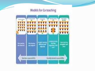 This presentation discusses team teaching, including its definition as a method involving two or more teachers working together to plan, conduct, and evaluate learning activities for students. The key characteristics, objectives, principles, types, procedures, benefits, advantages, and disadvantages of team teaching are outlined. Team teaching aims to improve education quality and utilize school resources through flexible grouping and a cooperative approach among teachers.
