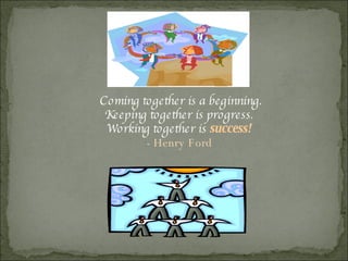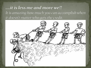 The document discusses the key differences between teams and groups. It notes that teams have shared leadership, interdependent roles, and both individual and group accountability and rewards. Groups have a clear leader and members perform independent jobs with individual accountability. Examples are provided of how teams improve organizational results by increasing employee involvement, reducing costs and absenteeism, and enhancing creativity and innovation.
