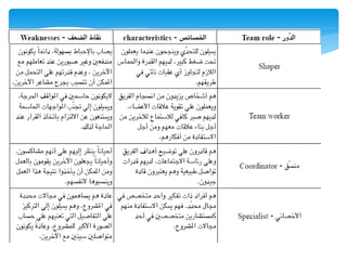 الوثيقة تتحدث عن أهمية التعاون والتفاعلات الإيجابية بين أفراد الفرق وتأثير السلوكيات السلبية على النجاح الجماعي. تسلط الضوء على أنواع الأفراد الذين يمكن أن يكونوا عوائق في بيئة العمل، مثل الكسول، المحبط، والجبان، وتقدم نصائح لتجنبهم. كما تشدد على أهمية القيادة والاتصال الفعال لتحقيق النجاح في الفرق.