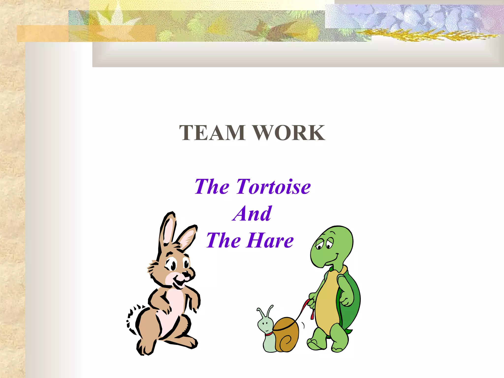 The document tells the story of the tortoise and the hare through multiple races. In the first race, the hare loses by being overconfident and falling asleep. In the second race, the hare wins by running consistently fast. In the third race, the tortoise wins by changing the course to include swimming, playing to its strength. Finally, they have the best outcome by working as a team, combining their strengths. The moral is that individual brilliance is good but teamwork allows people to play to their strengths and perform better.