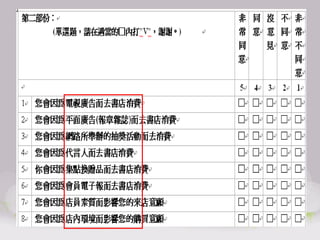 该文档讨论了台湾书店产业的发展历程,从传统经营到连锁经营再到复合经营。同时,它分析了两大连锁书店(诚品和金石堂)的市场策略、SWOT分析及市场调研结果,并提出改进建议以吸引更多顾客,提升销售。这包括优化店内环境、举办活动和实施多样化营销策略。