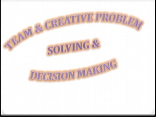 This document discusses groups, teams, and leadership in organizations. It describes different types of groups like functional groups, task groups, and informal groups. It also covers participative management, the linking pin role, and project matrix teams. Decision making and problem solving approaches are examined, including styles, models, and generating creativity. Supervisory styles are also mentioned.
