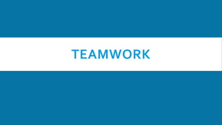 Teamwork provides several advantages such as tackling complex issues, leveraging diverse expertise, and boosting morale. Effective teamwork requires collaboration where members support each other by sharing information, expertise, and working towards common goals. It also requires strong communication, commitment to shared objectives, contributions from all members based on their strengths, and flexibility to adapt to changes. True collaboration is an essential pillar of productive teamwork and involves empathy, honesty, and a shared sense of belonging within the team.