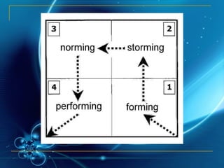The document discusses different aspects of team knowledge and management. It defines teams and different types of teams. It discusses how job characteristics like skill variety and autonomy can impact employee satisfaction and productivity. It also outlines the developmental stages teams go through. It provides guidance on managing team meetings, problem solving, performance reviews, and leadership. The document suggests applying this knowledge at Nestle's Kejayan factory through interviews, observation, assessment, documentation, learning, and doing.