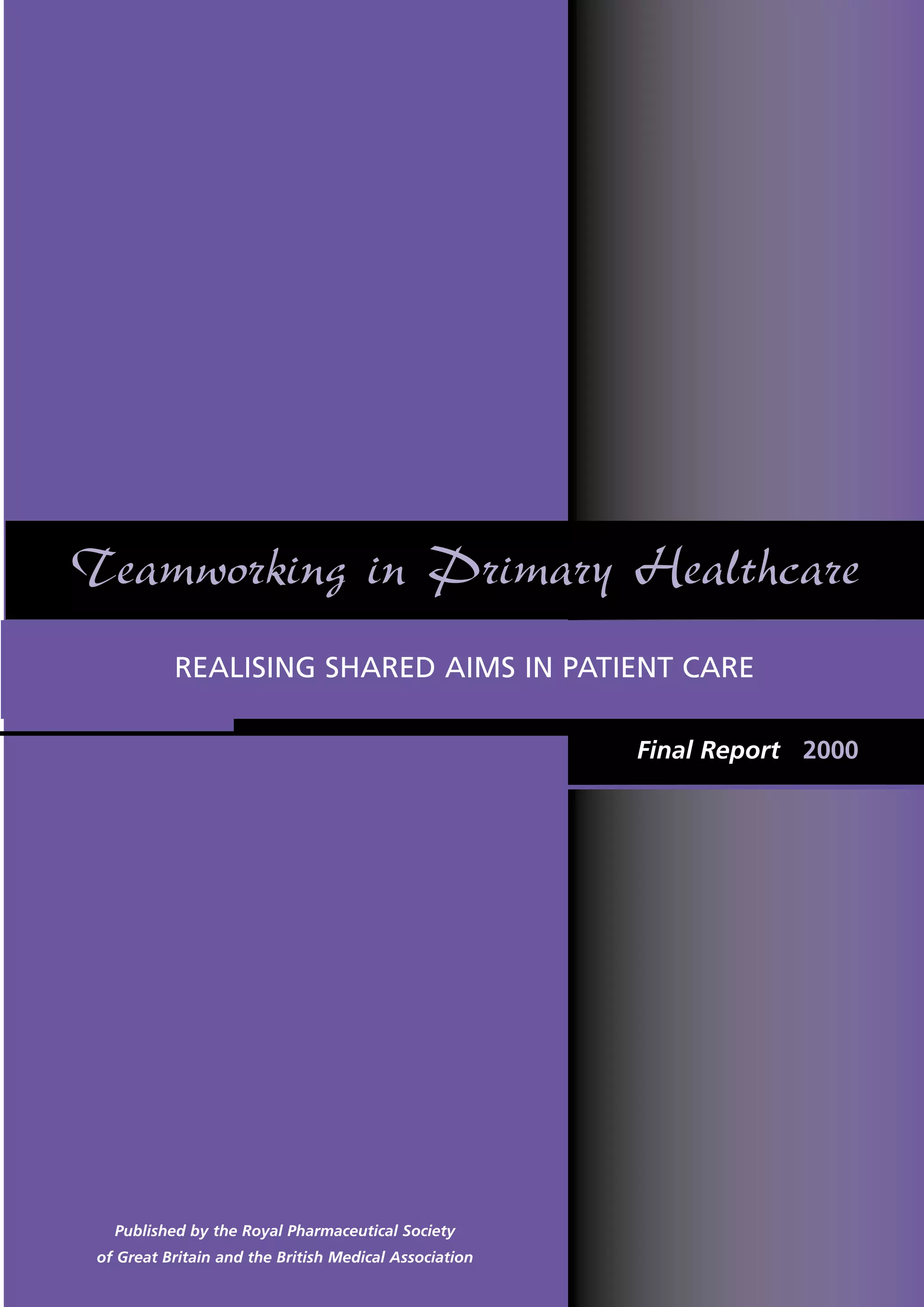 This document summarizes the final report from the Forum on Teamworking in Primary Healthcare. The forum was convened by several national healthcare organizations to examine teamworking in primary care. The report found evidence that effective teamwork occurs when roles are clearly defined and rewarding, communication is good, and there are shared goals. It identified barriers like competing demands, status differences, and lack of resources. The report provides recommendations to improve teamworking at both the organizational and team member levels. It also highlights several examples of successful teamworking initiatives in UK primary care settings.